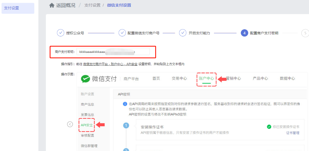 (注:不要轻易修改支付密钥,修改后记得密钥回到后台中同步更新)