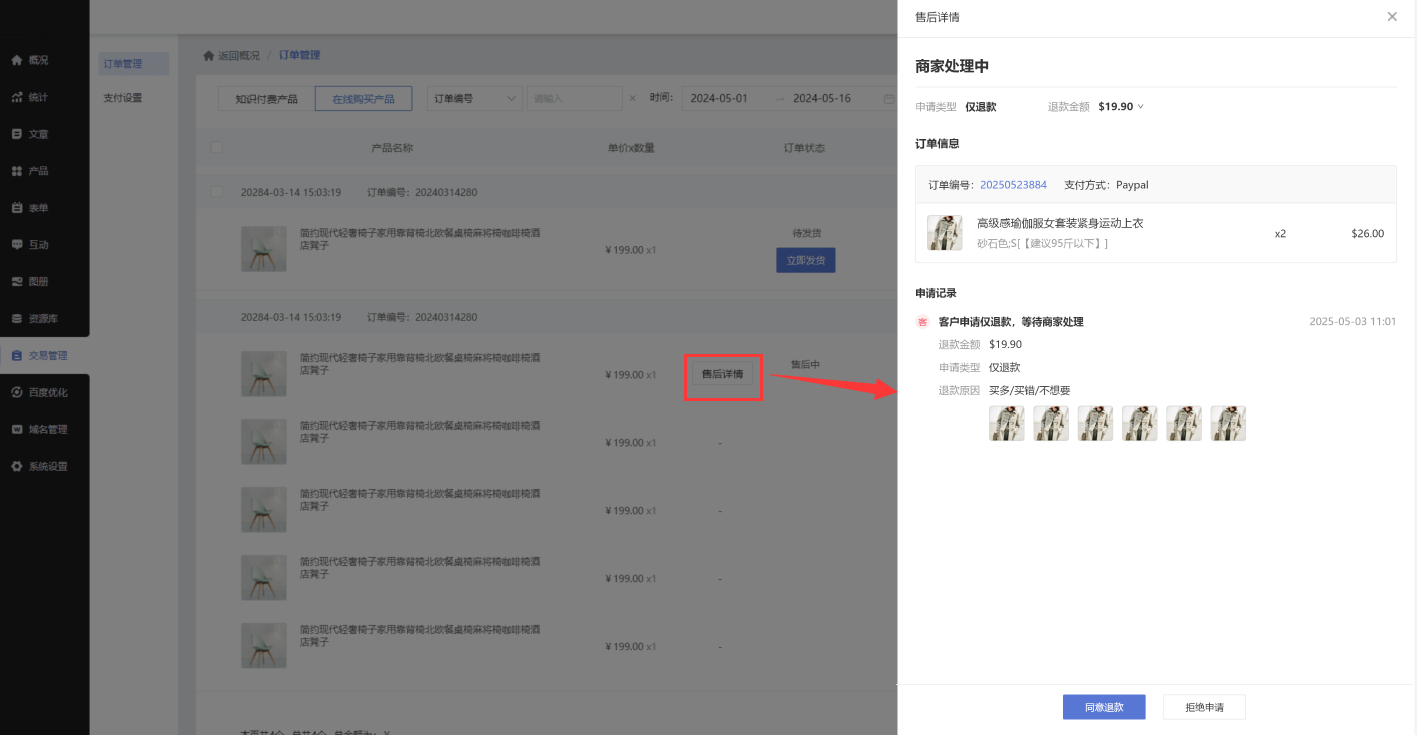 售后功能指的是paypal等订单在销售后支持“仅退款”及“退货退款”,其作用是方便海外客户退款操作,同时也可以避免支付过程中出现纠纷或错误。通过售后功能,客户可以在更短的时间内收到款项,同时商家也可以更快地完成退款流程,提升客户满意度。