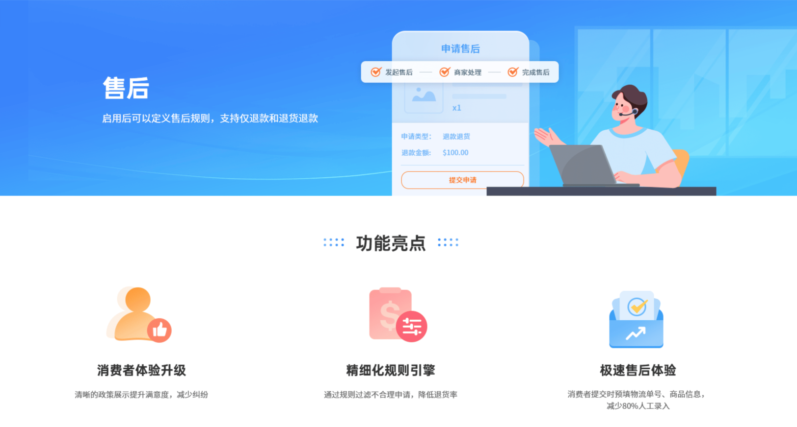 【手续费】消费者申请退款时,支持商家扣除手续费,以抵消收发货的成本费用,可以根据业务情况决定是否启用;手续费会在消费者申请售后时自动扣除。如您启用手续费,建议您在退货退款政策中强调此项服务,手续费一般是售后纠纷的常见来源之一。