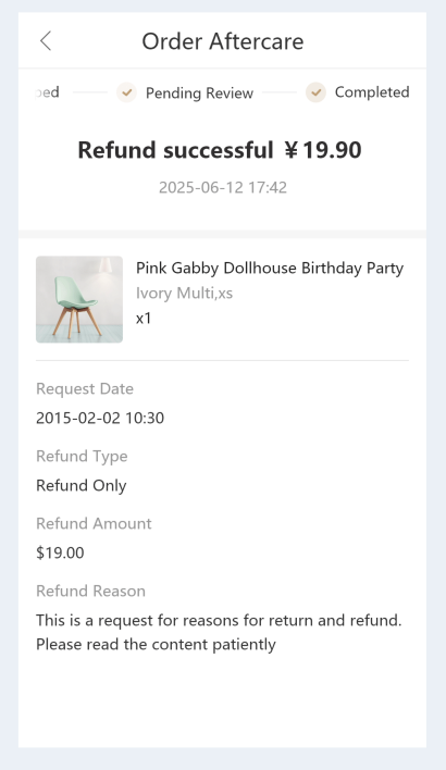 5.1 消费者提交申请后,商家可以在订单管理中查看售后单详情: