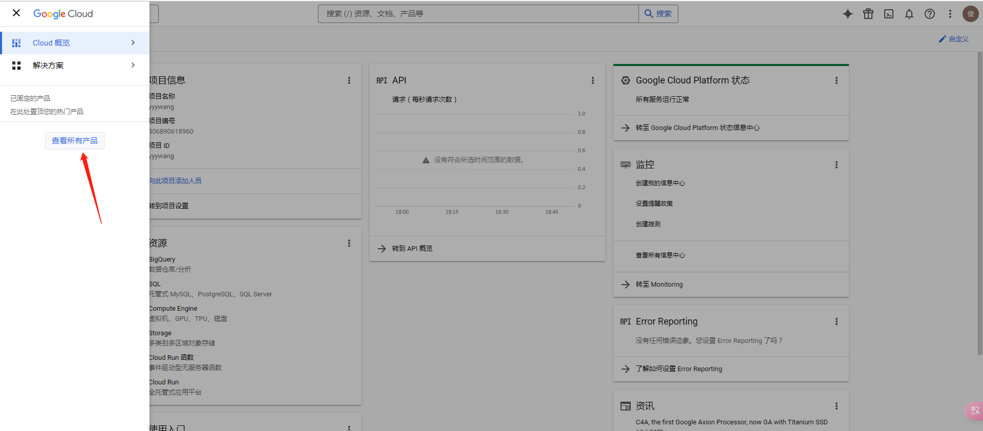 页面地址:https://console.cloud.google.com/projectselector2/home