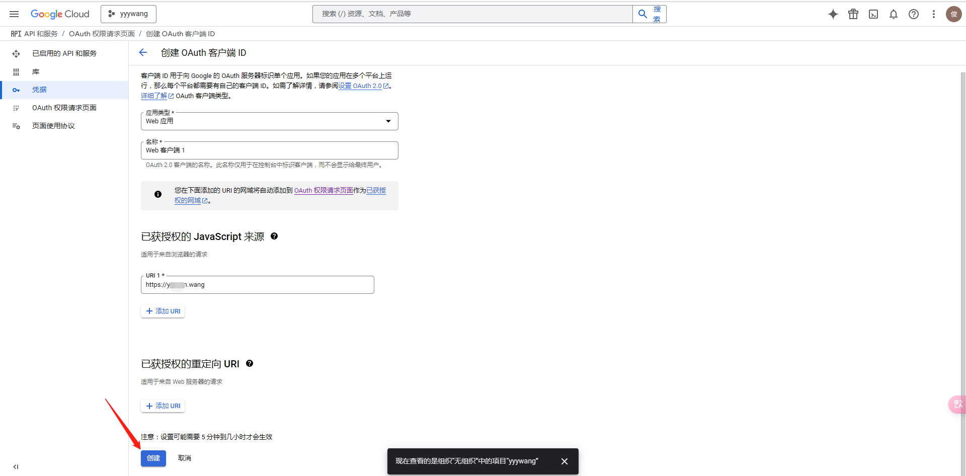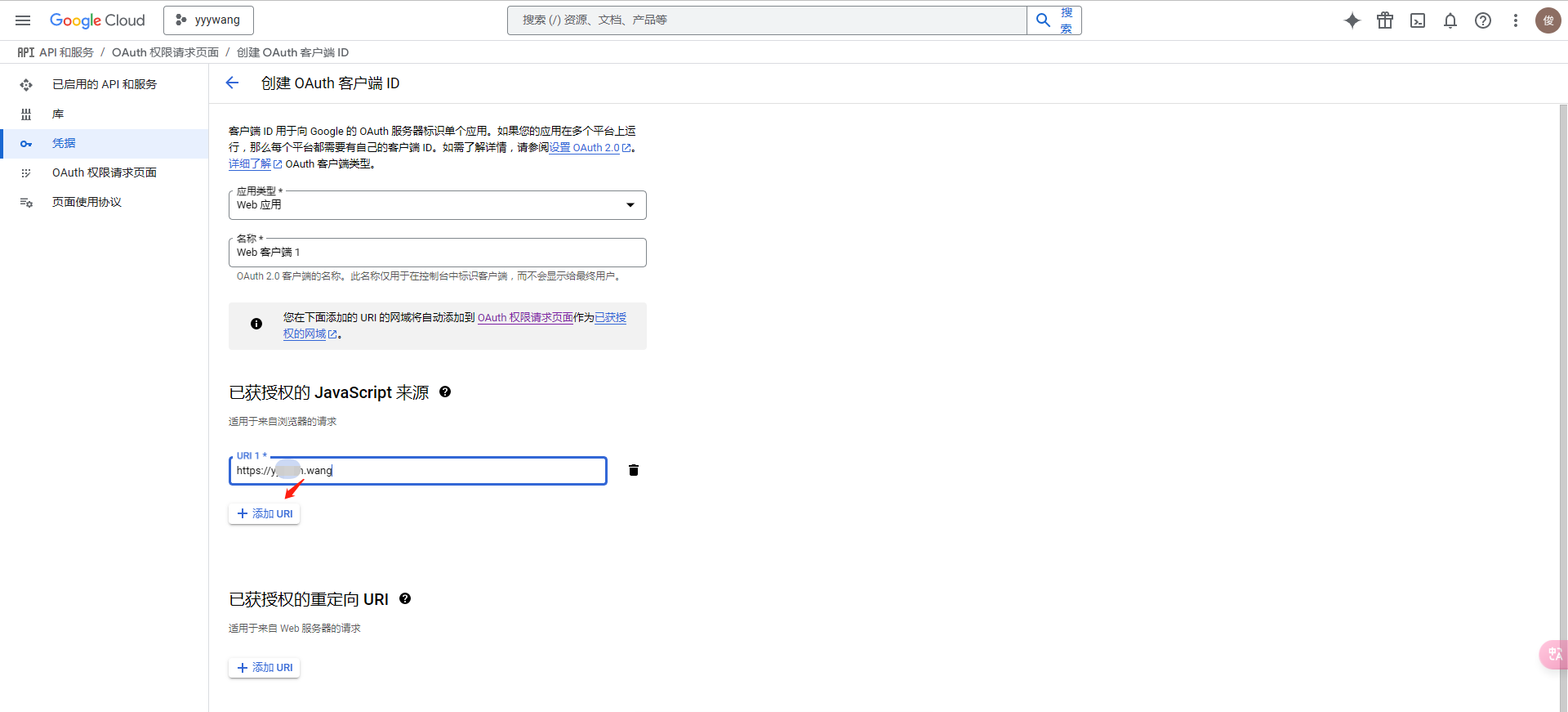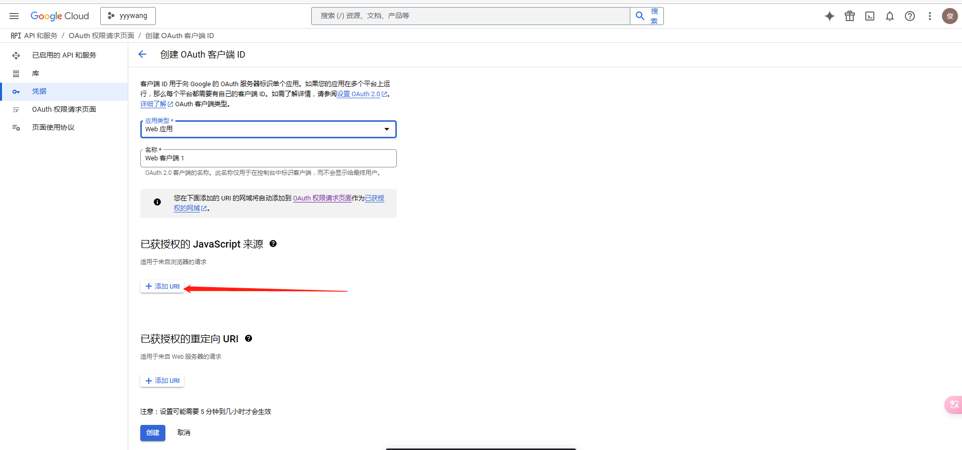 (12)在已获授权的javascript来源点击添加url,填写您的域名,假如您的域名是www.xxx.com,则填写www.xxx.com,如果手机网站也需要登陆则需同时填写手机网站域名,最后点击创建