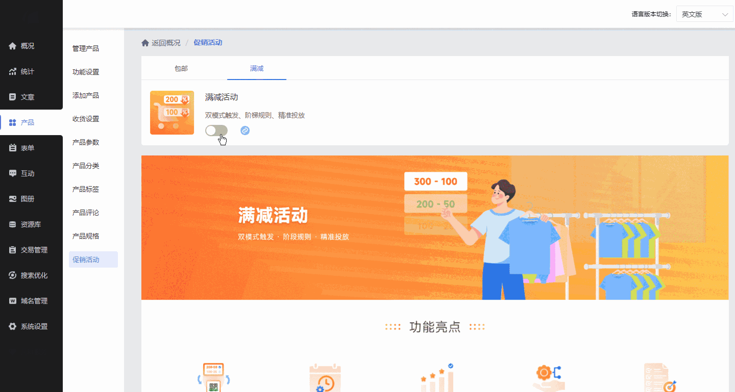 一、【跨境电商】新增“满减活动”功能!