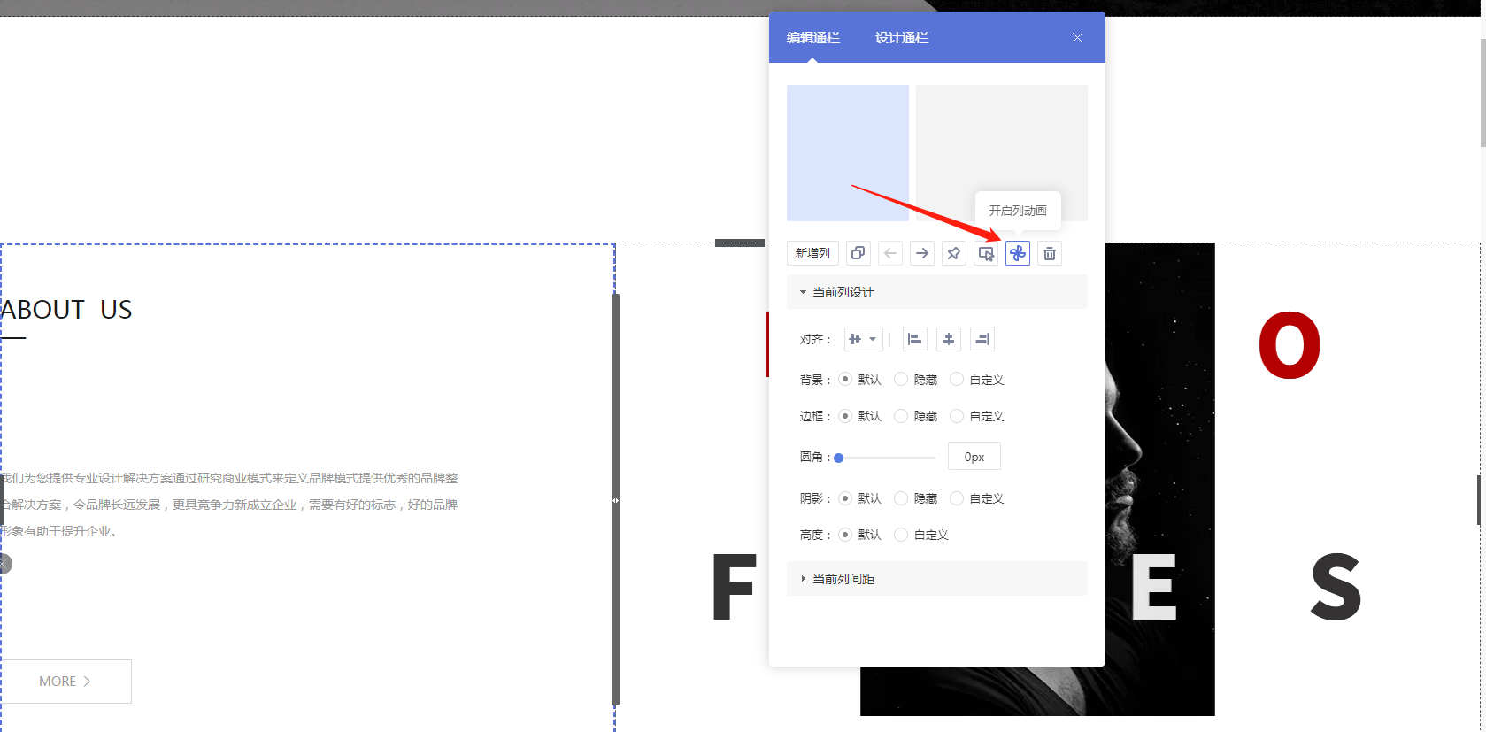 1. 点击“开启列动画”