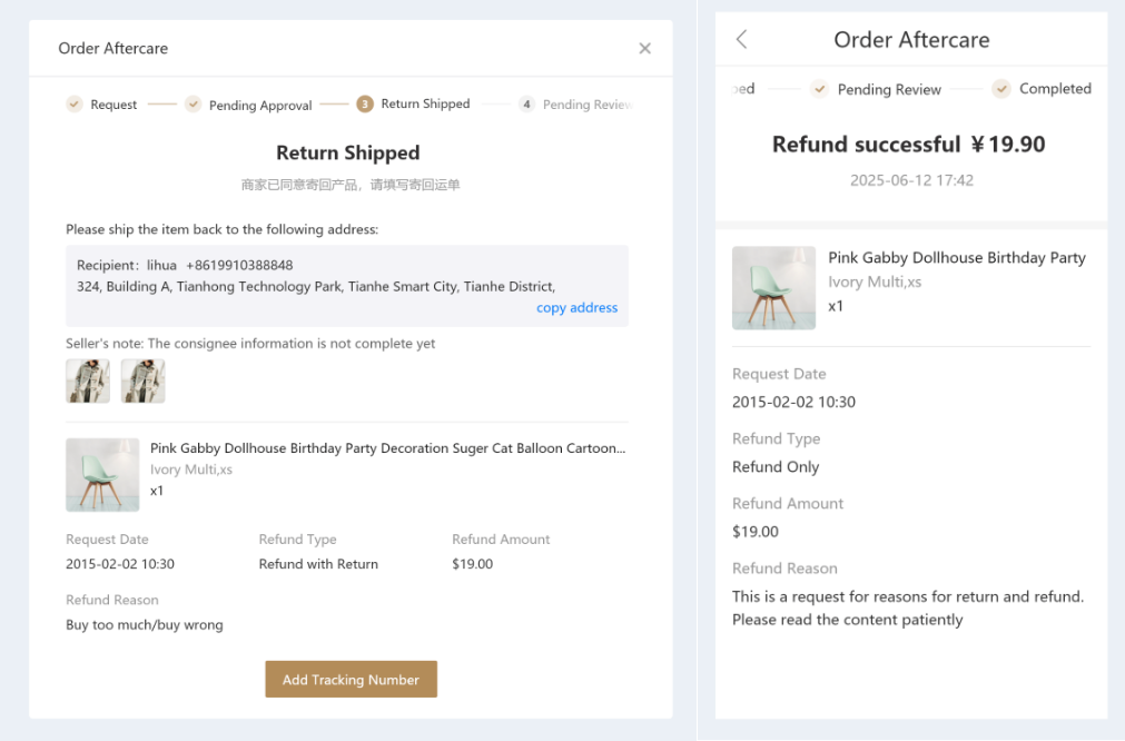 新增售后功能,支持退货退款、仅退款等复杂场景,满足多样化运营需求