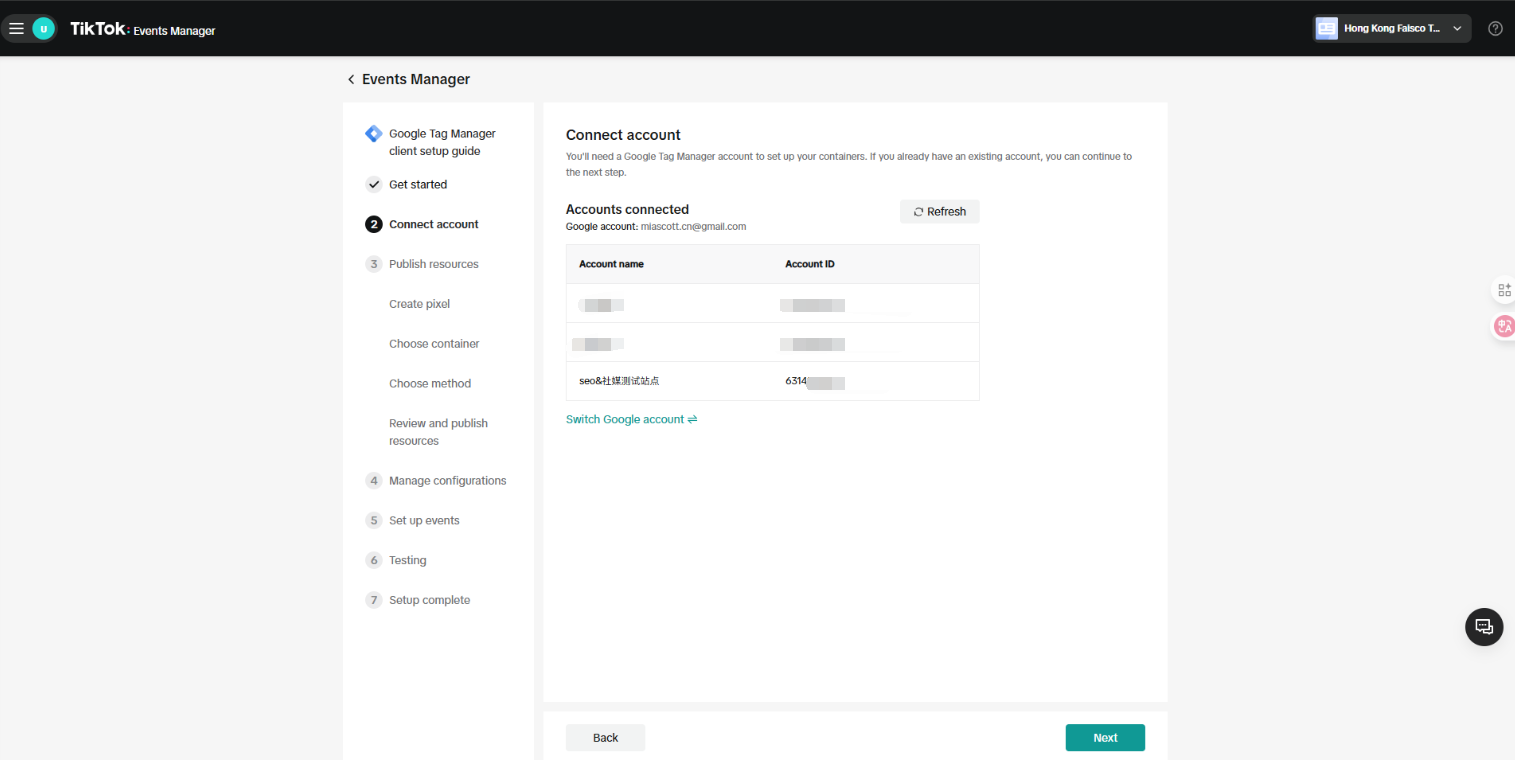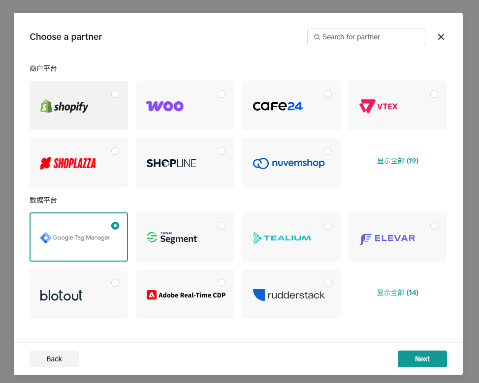 partner选择“Googletagmanager”,点击next按钮进入下一步操作: