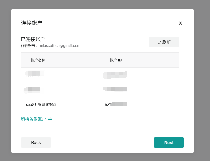 确认您的账号并点击下一步: