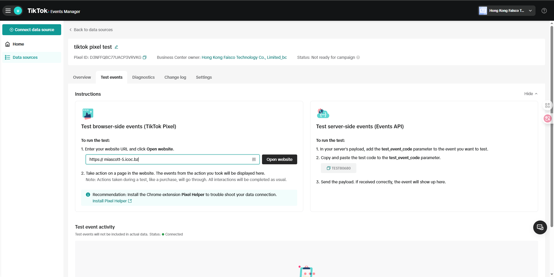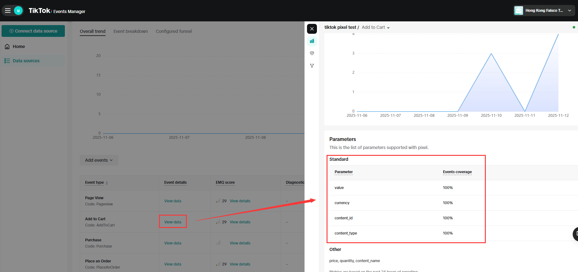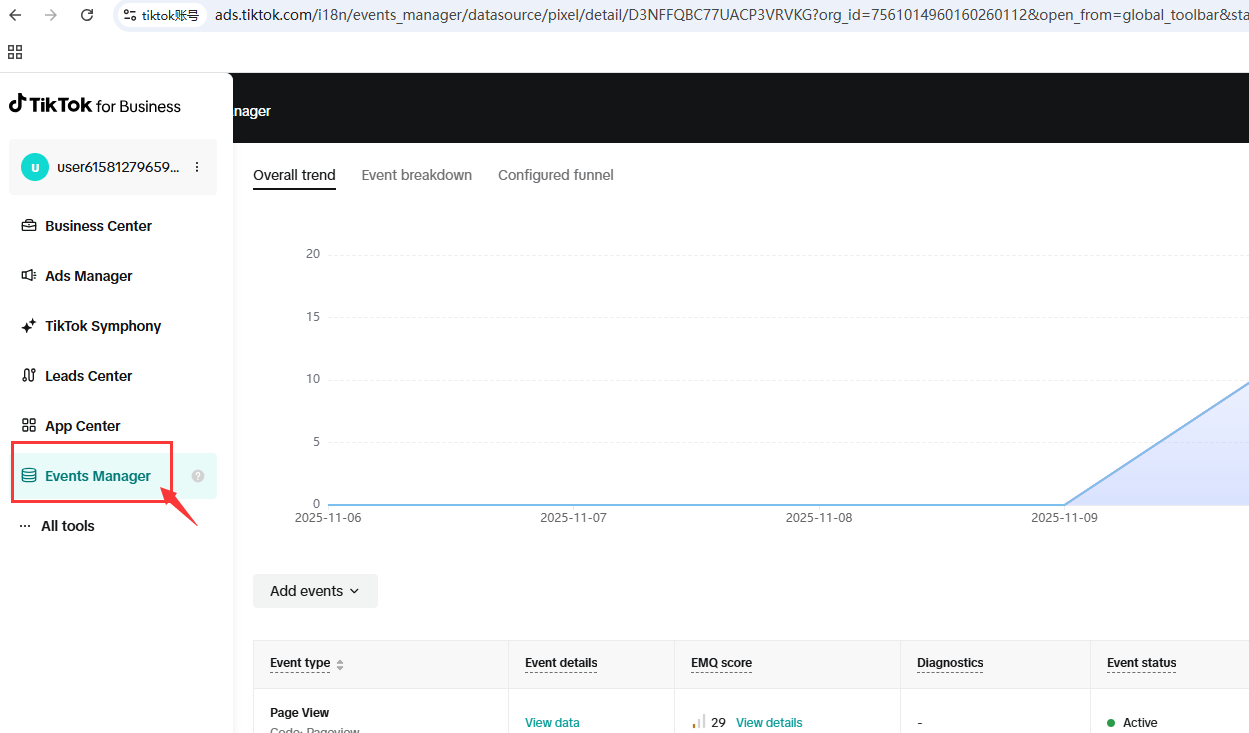 最后回到tiktok平台检查推送是否成功(留意新事件更新可能会有半个小时的延迟,请耐心等待并刷新页面)。