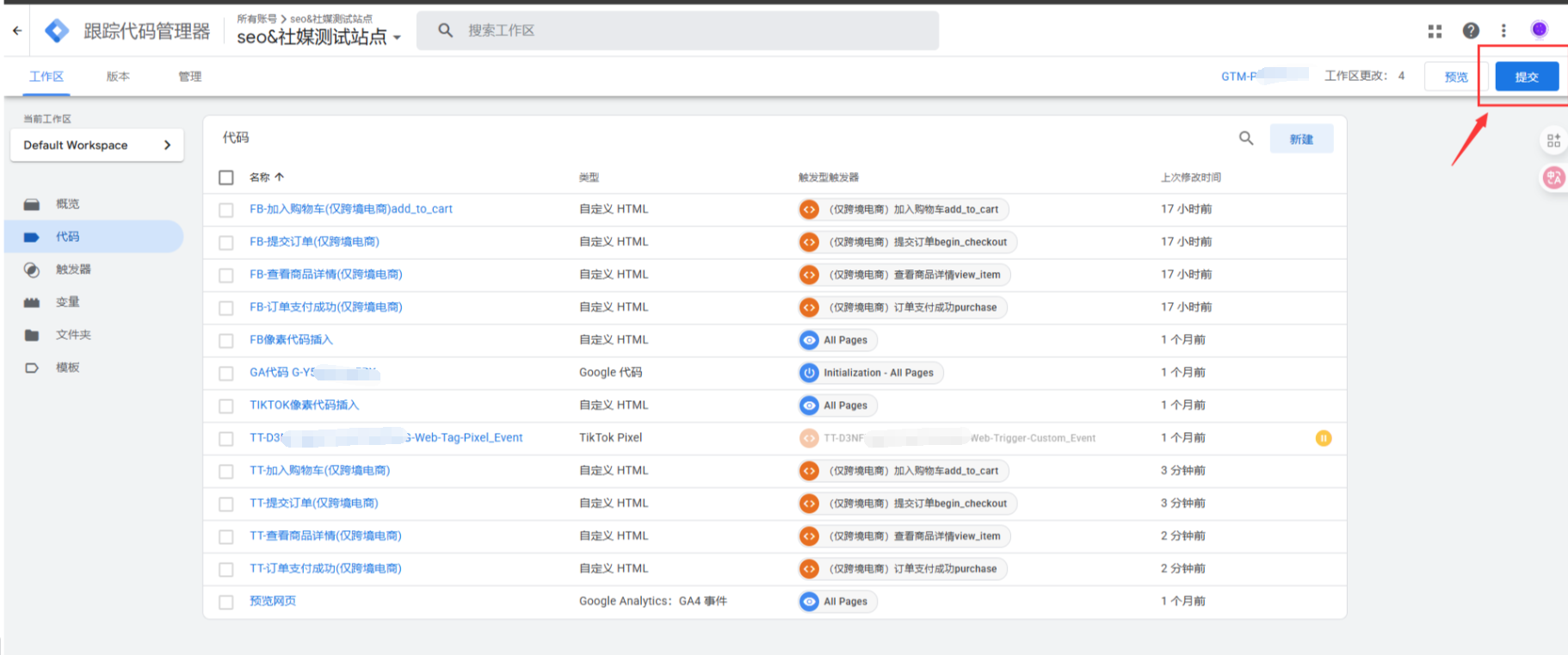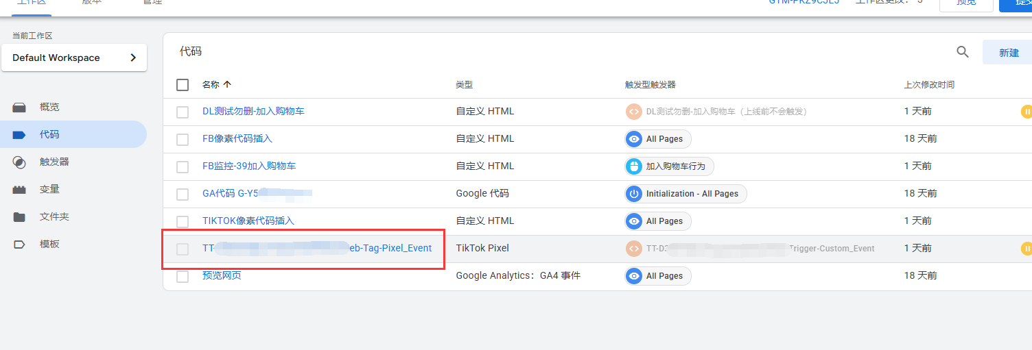STEP3 登录GTM检查您的Tik Tok基代码