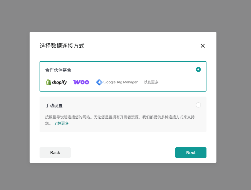 链接方式选择“合作伙伴整合”:
