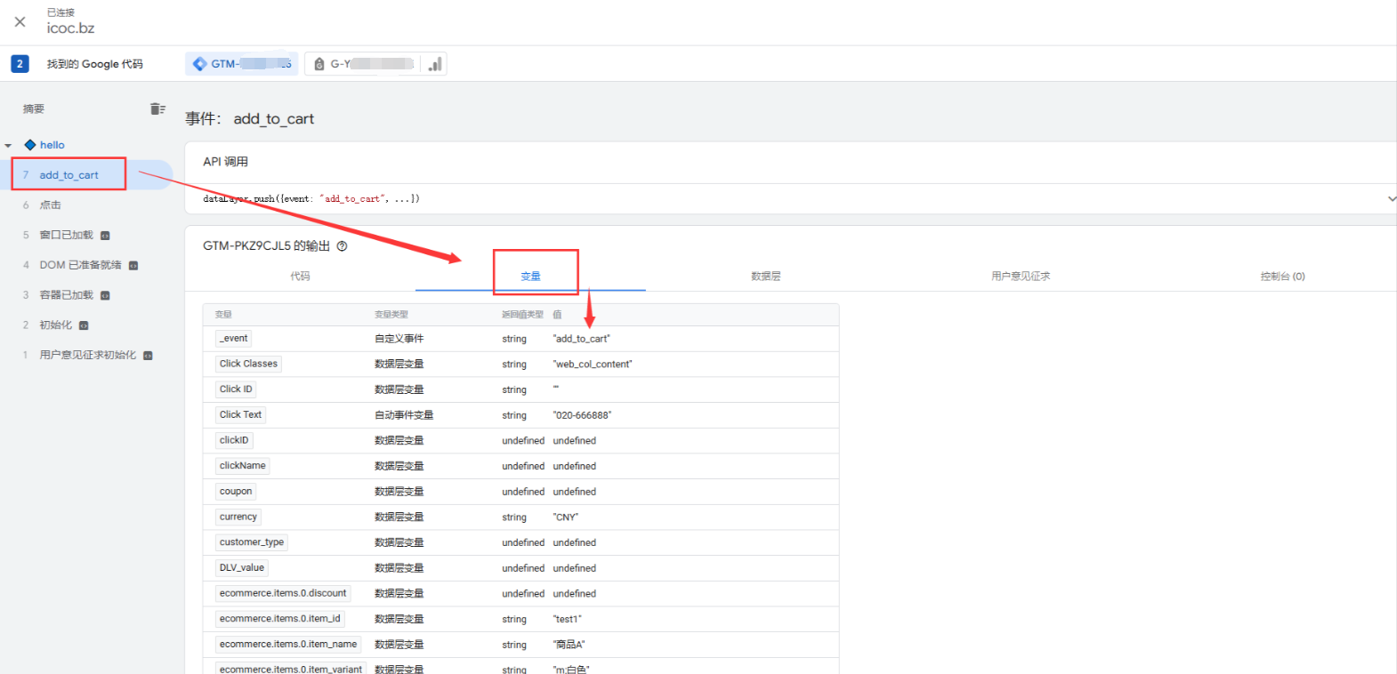 点击对应的行为-变量,查阅下方的参数是否能正确获取: