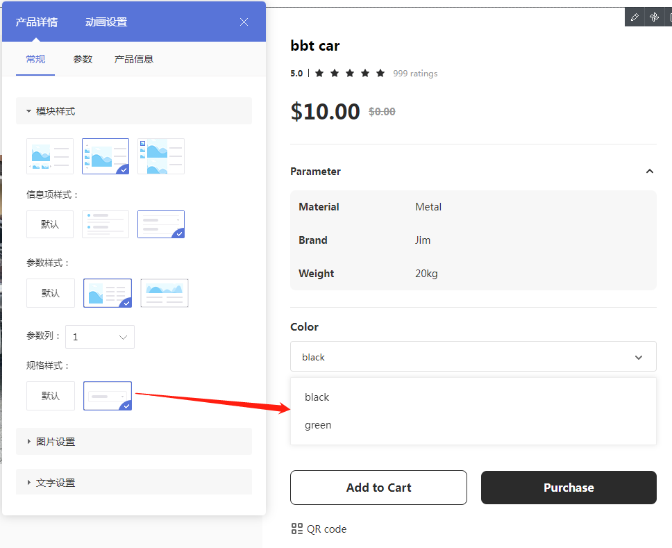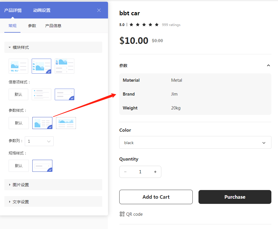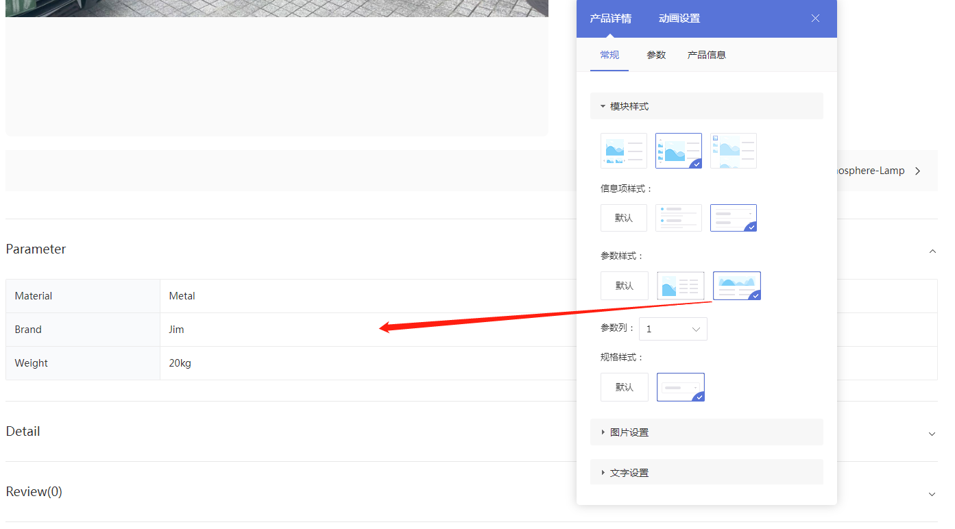 新增支持产品详情页更个性化的参数展示
