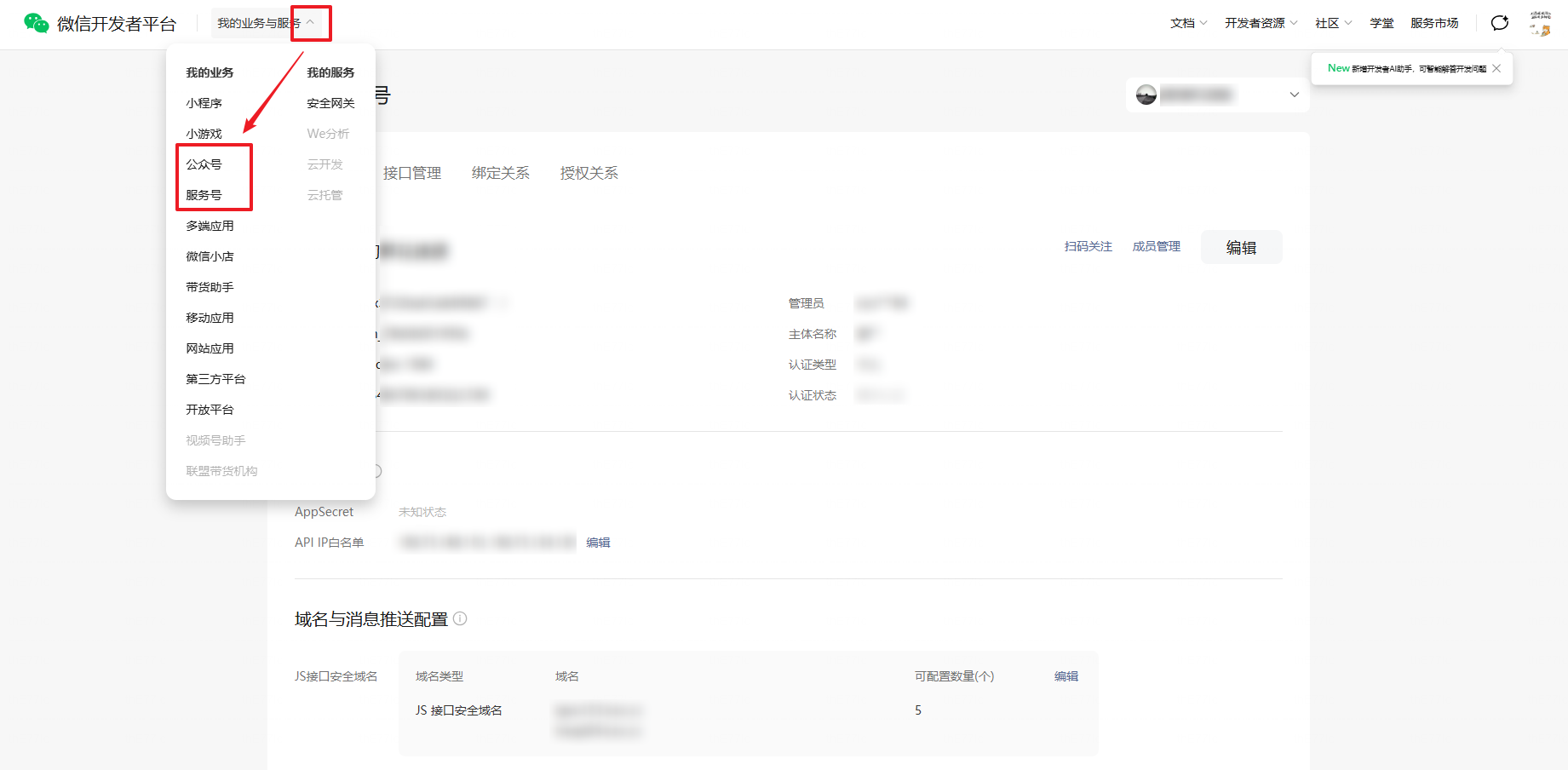 2.1需要登录微信开放平台(https://developers.weixin.qq.com/platform)-我的业务-公众号/服务号-基础信息-开发密钥,找到App Secret获取