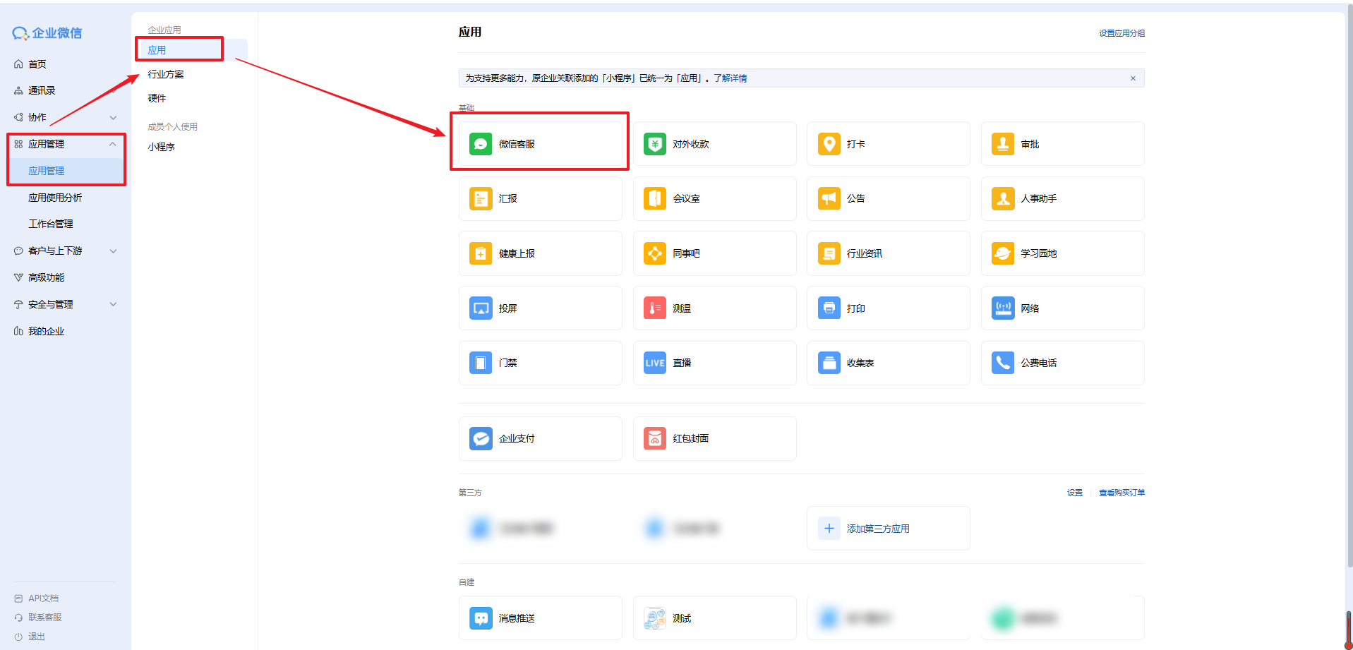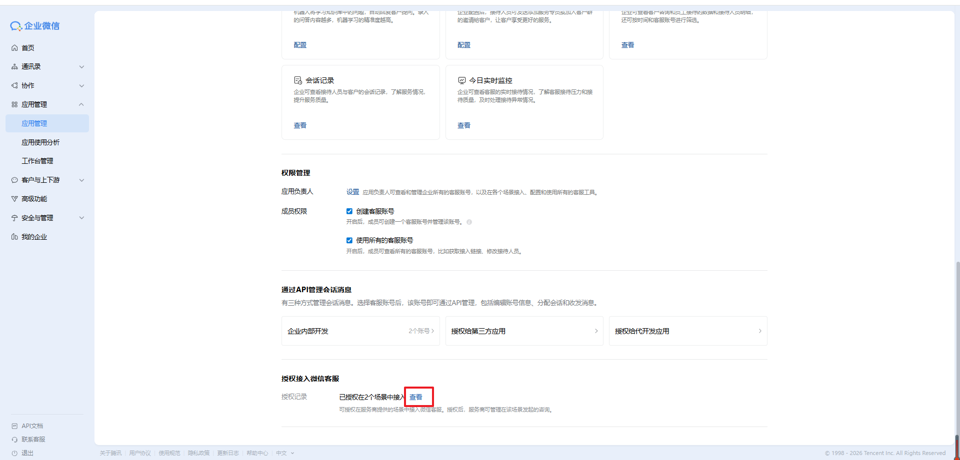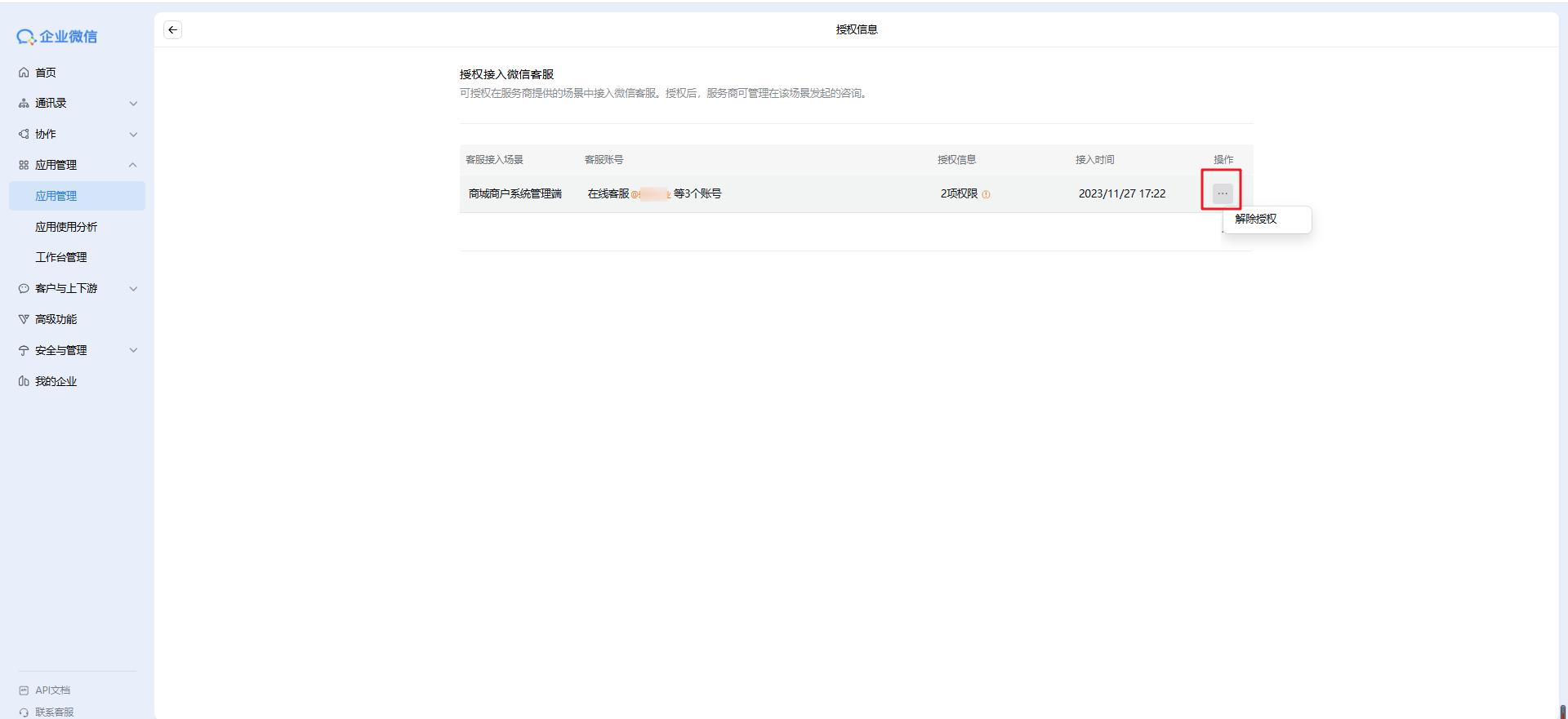 2. 从企业微信管理后台(https://work.weixin.qq.com)的在应用管理 - 微信客服页面,底部底部的授权接入微信客服中解除授权