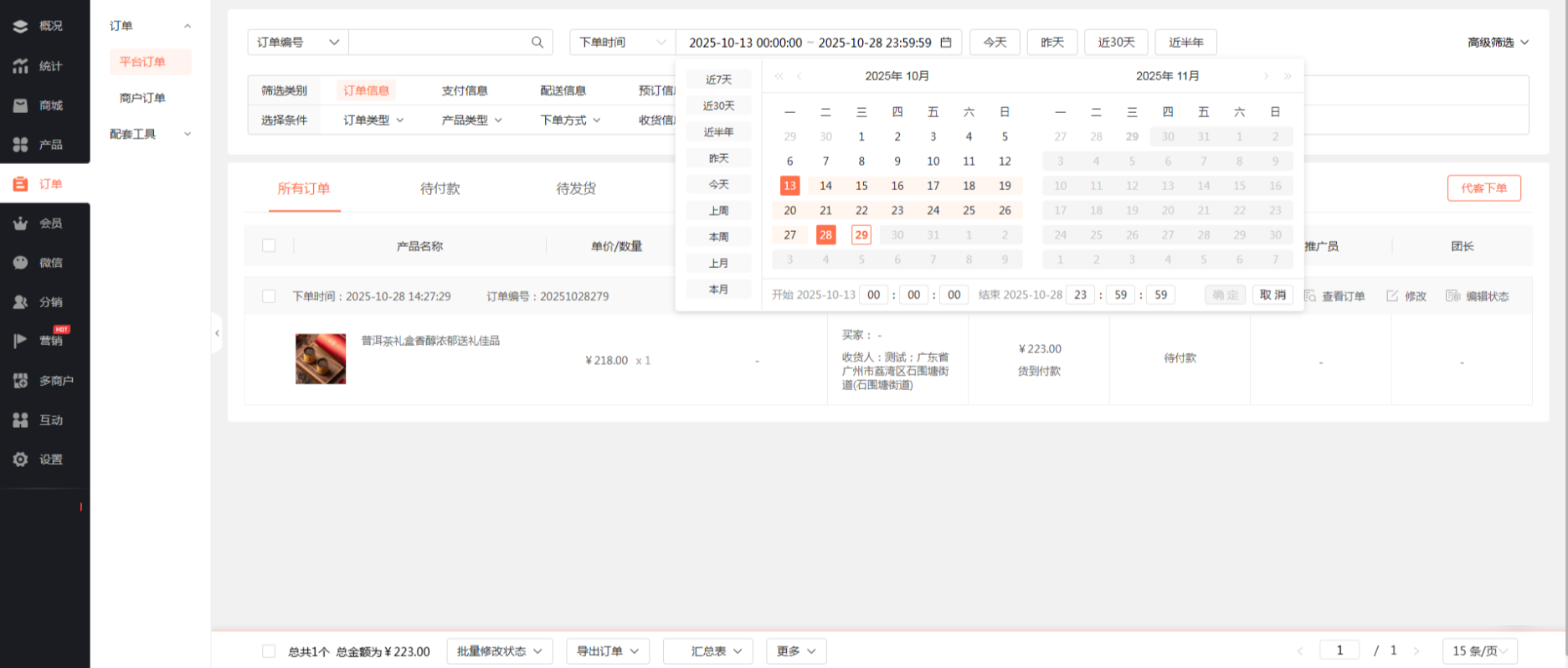 二、订单列表时间筛选组件精确到秒