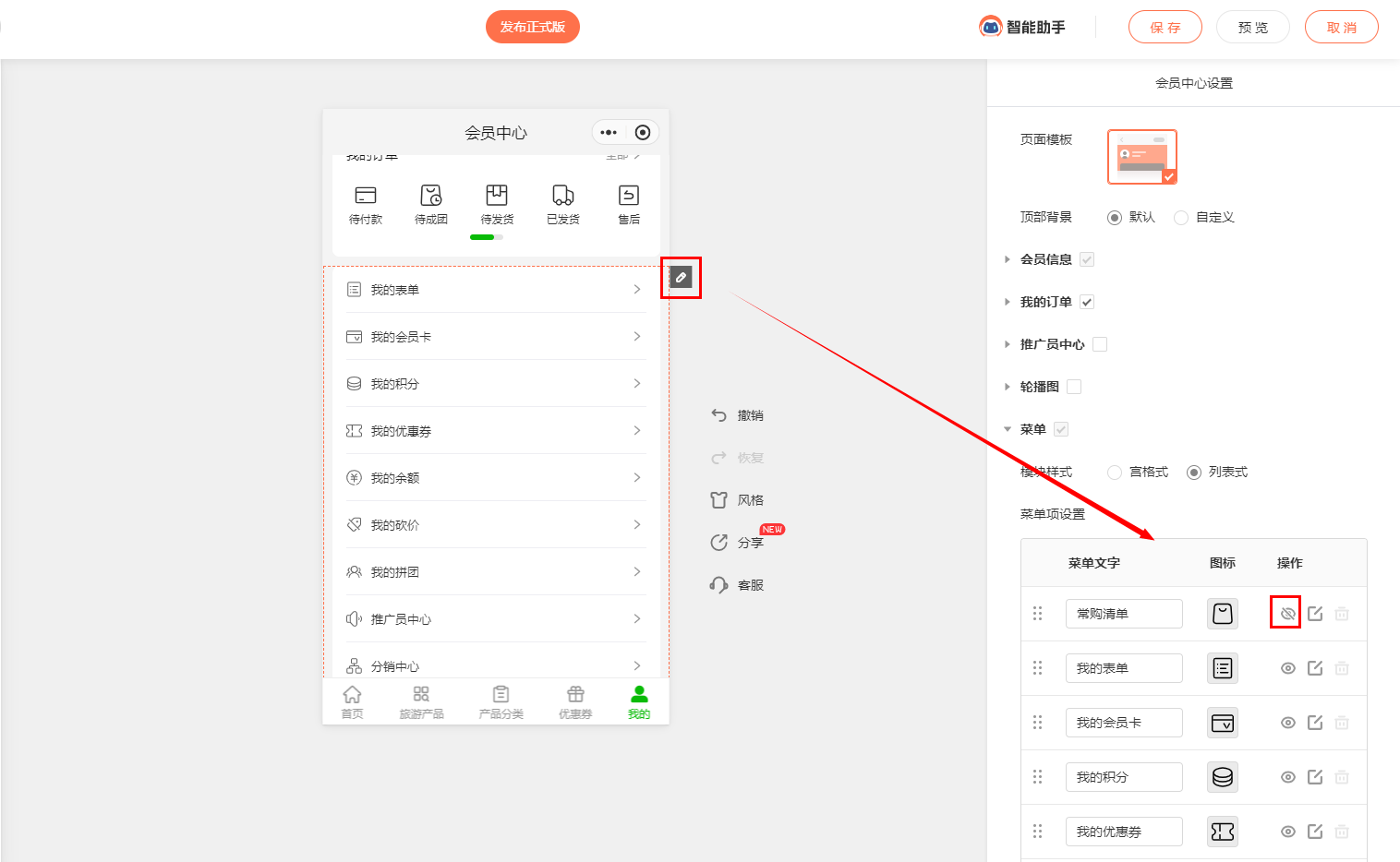 会员访问时,会员中心的菜单未正常显示,或后台设置与前端显示不一致。 可能原因及排查步骤 :