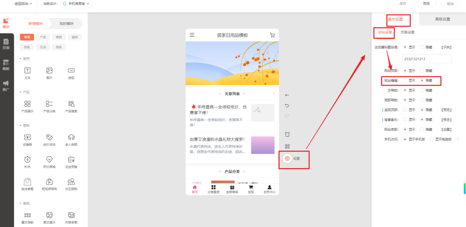 商城中怎么隐藏除首页外的横幅图片 - 智能建站学院