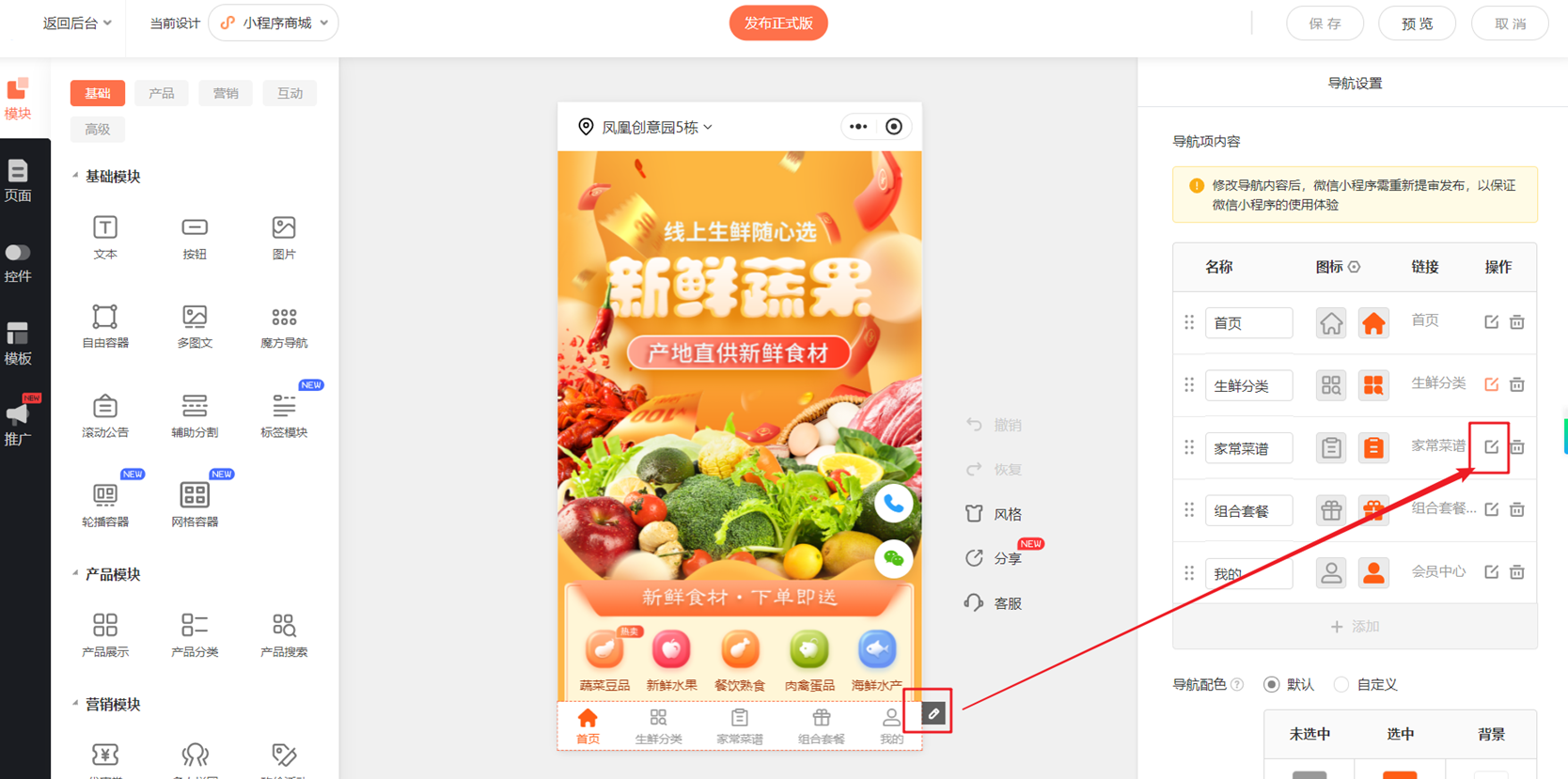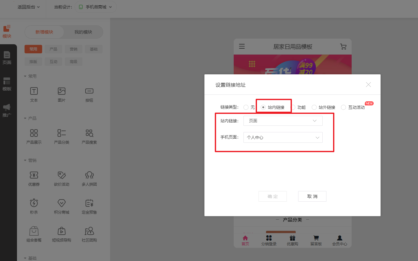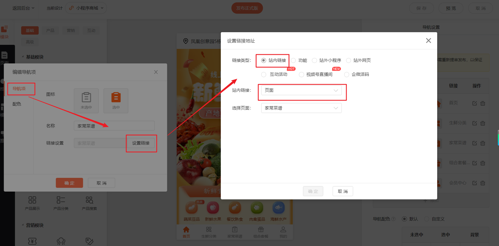 2.系统支持最多添加5个导航项目(即最多可关联5个页面显示导航)