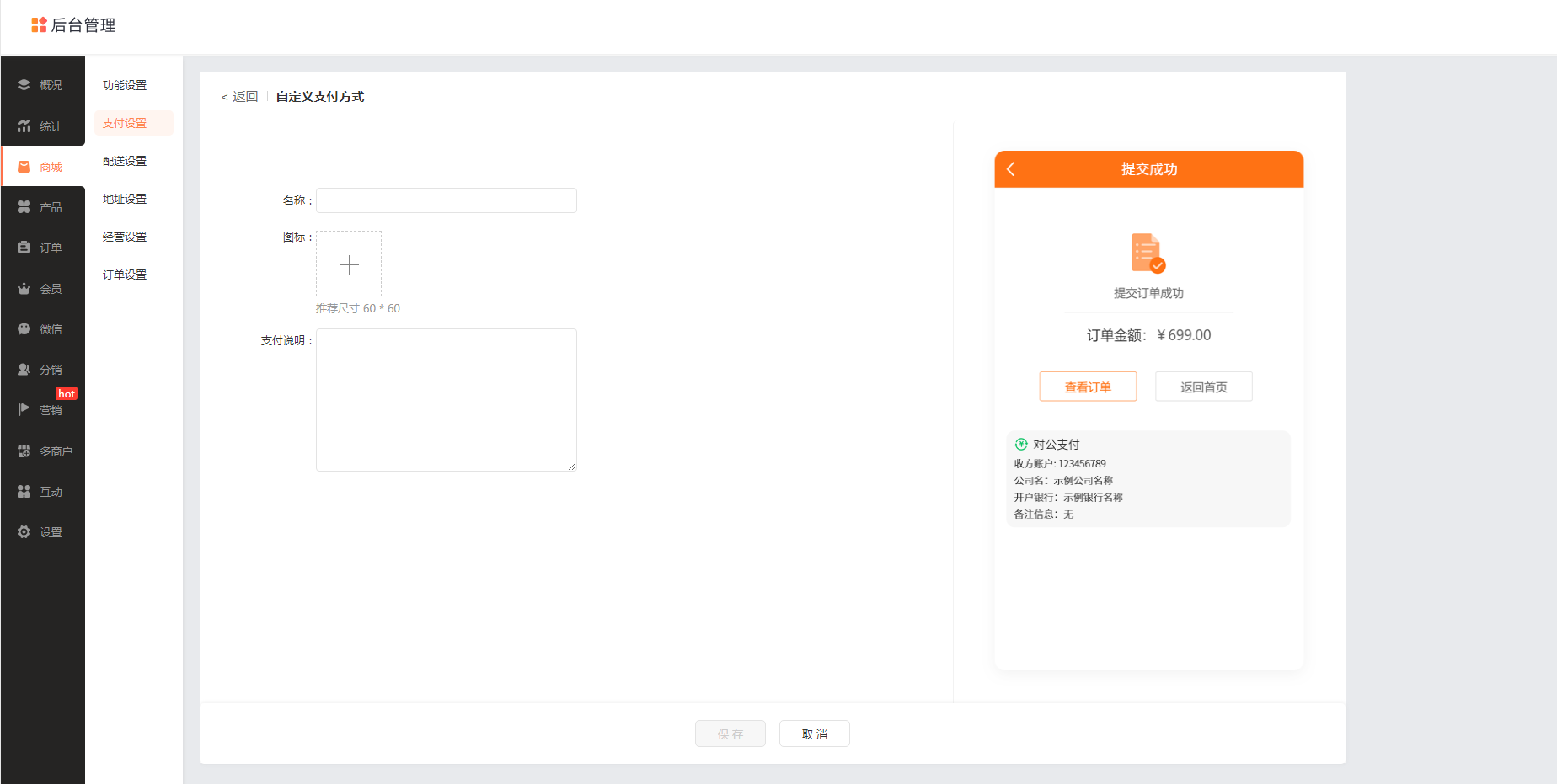 ② 图标:商家可上传支付方式图标。