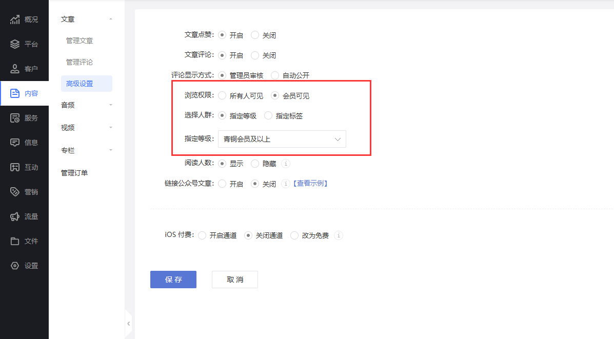 目前支持与会员等级结合限制访问的功能有:音频、视频、专栏、服务、信息库、打卡、答题、信息库、文件下载模块、页面访问
