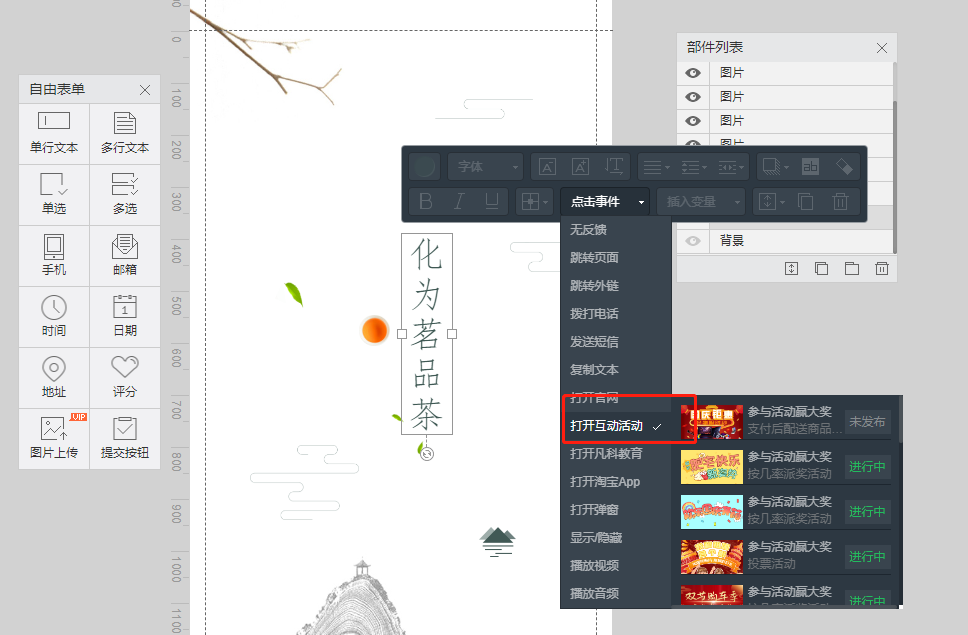 A: 微传单无法直接设置抽奖,但可以设置跳转事件到营销活动进行抽奖