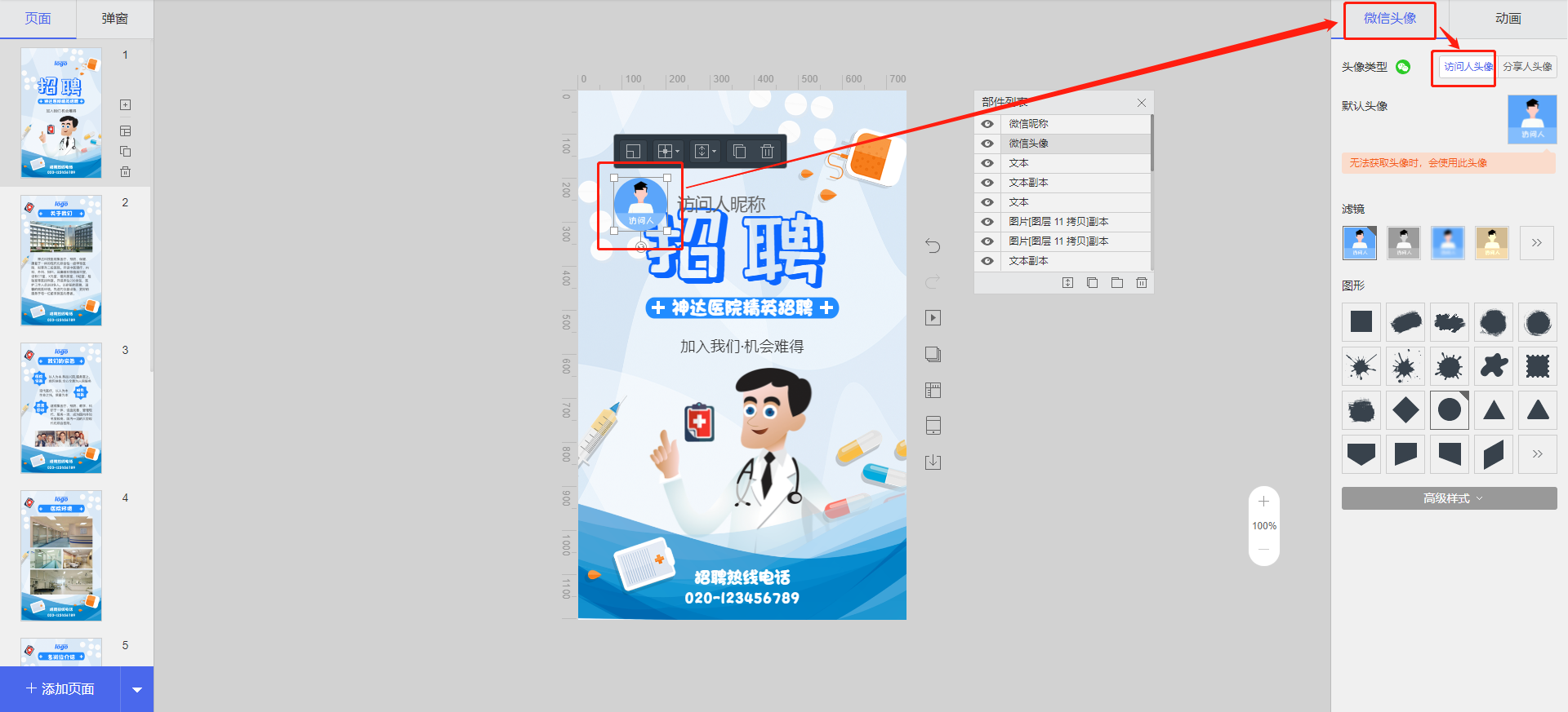 如何在邀请函里面插入浏览用户的头像和昵称呢?