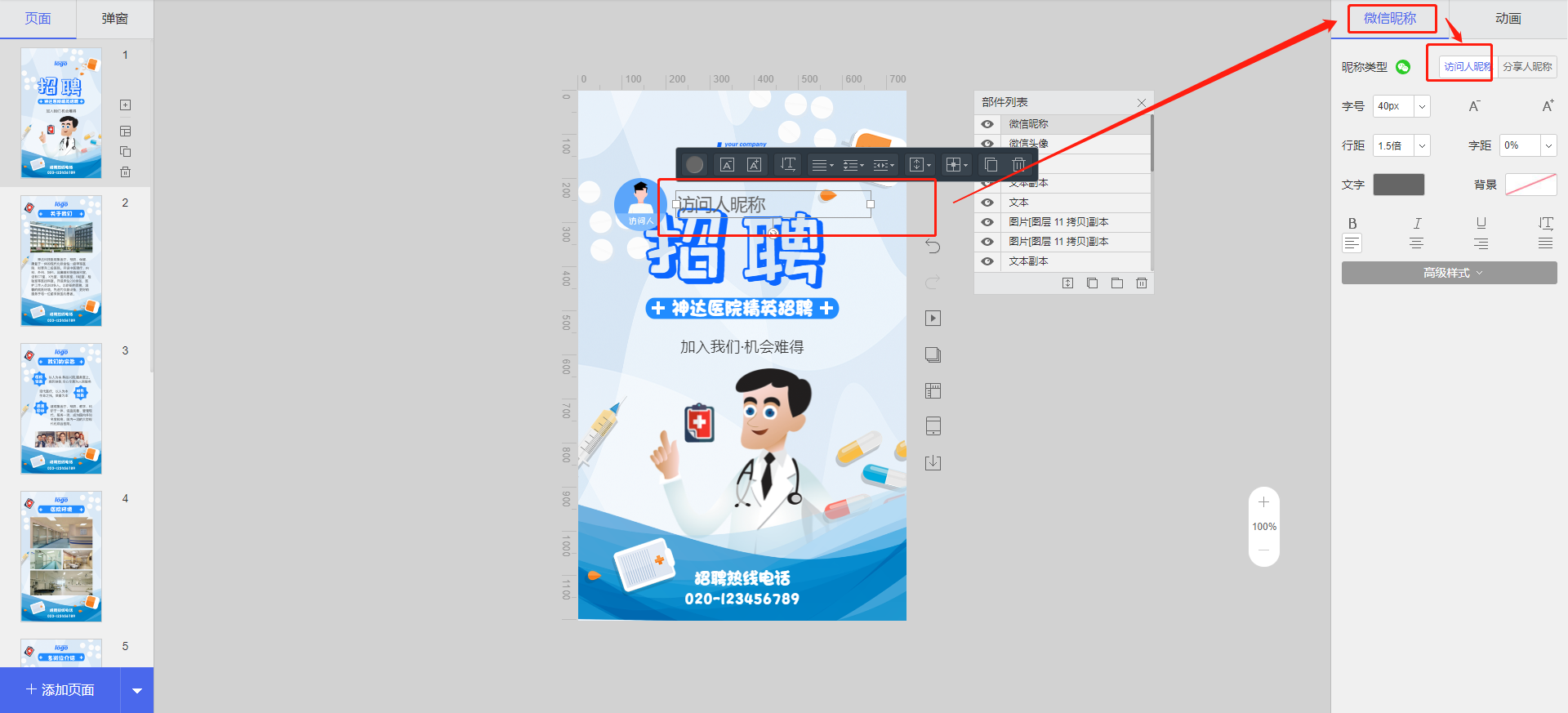 A:可以在控件里面添加【微信】功能,即可分别显示对应的访问人头像和昵称