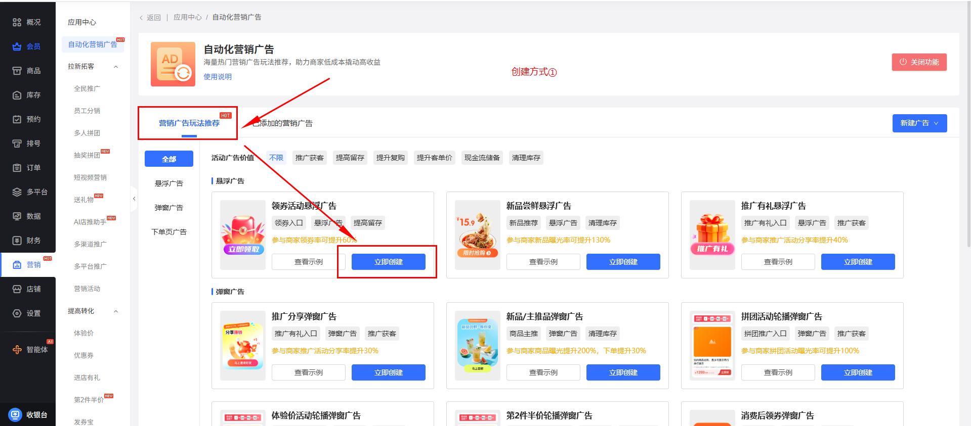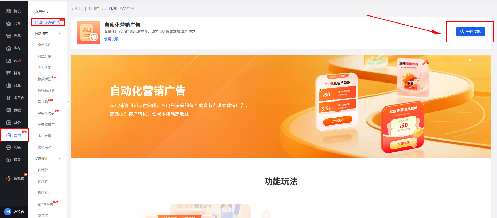 1、营销-自动化营销广告-开启功能
