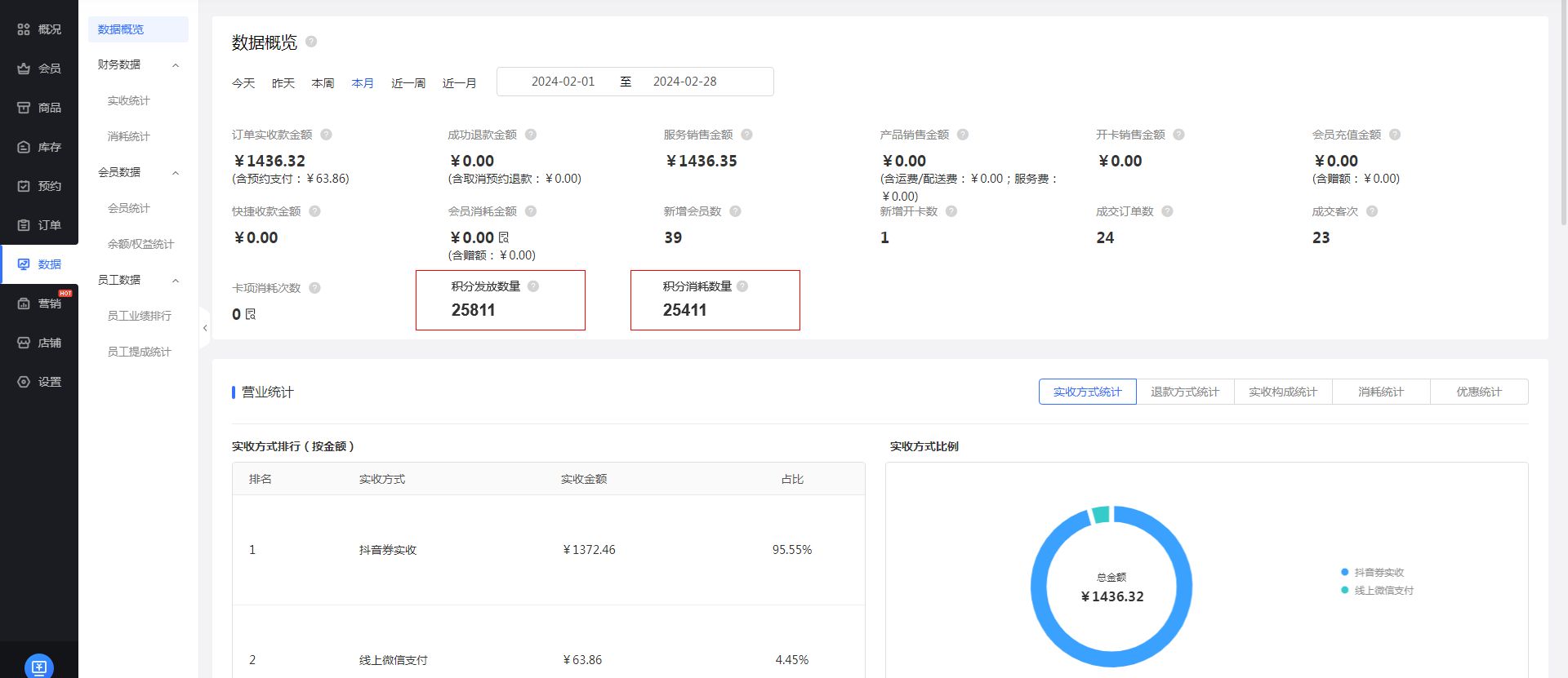 1、数据概览新增“积分发放数量”“积分消耗数量”数据