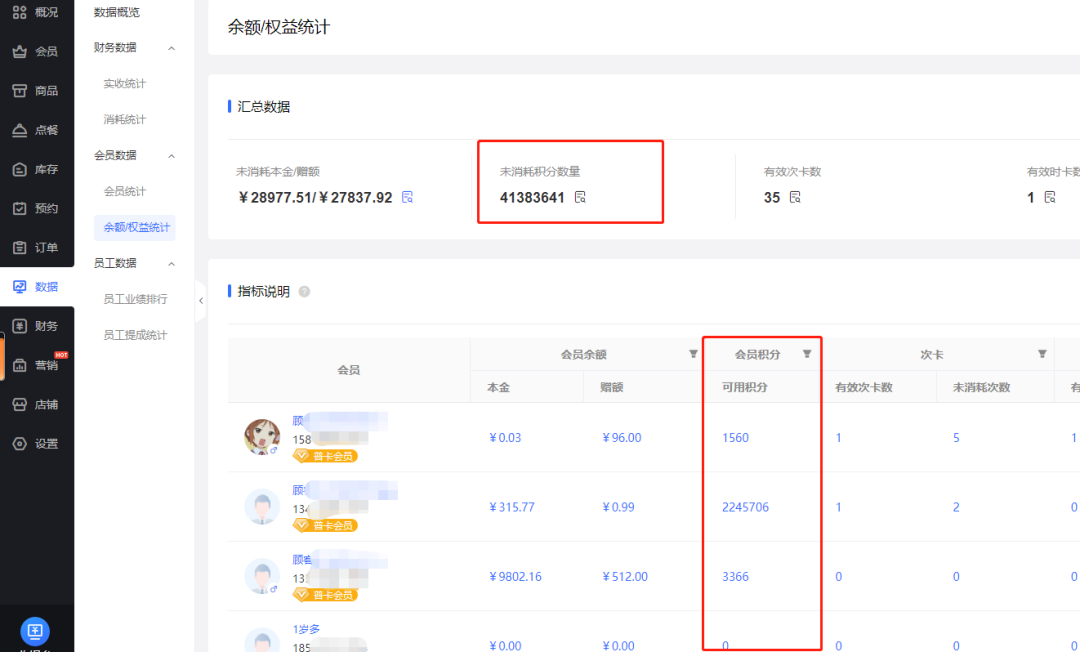 完善各项积分数据统计,让商家更直观地了解店铺的“积分发放数量”“积分消耗数量”“客户未消耗积分数量”助力商家精细化运营