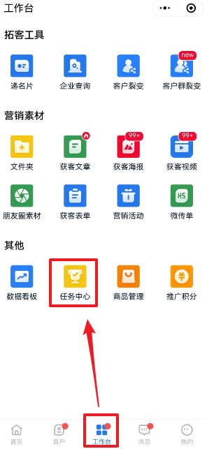 创建任务路径【销售系统小程序-工作台-任务中心-创建任务】