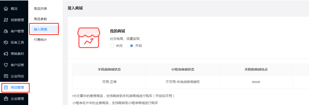 1.您需要到后台【商城管理】-【接入商城】开启商城接入,再到导入您的商城商品,才能选择勾选;