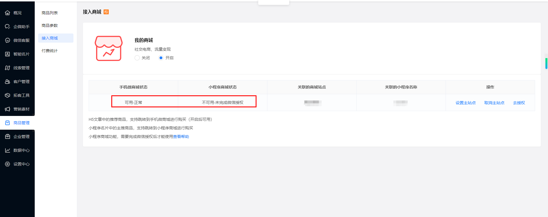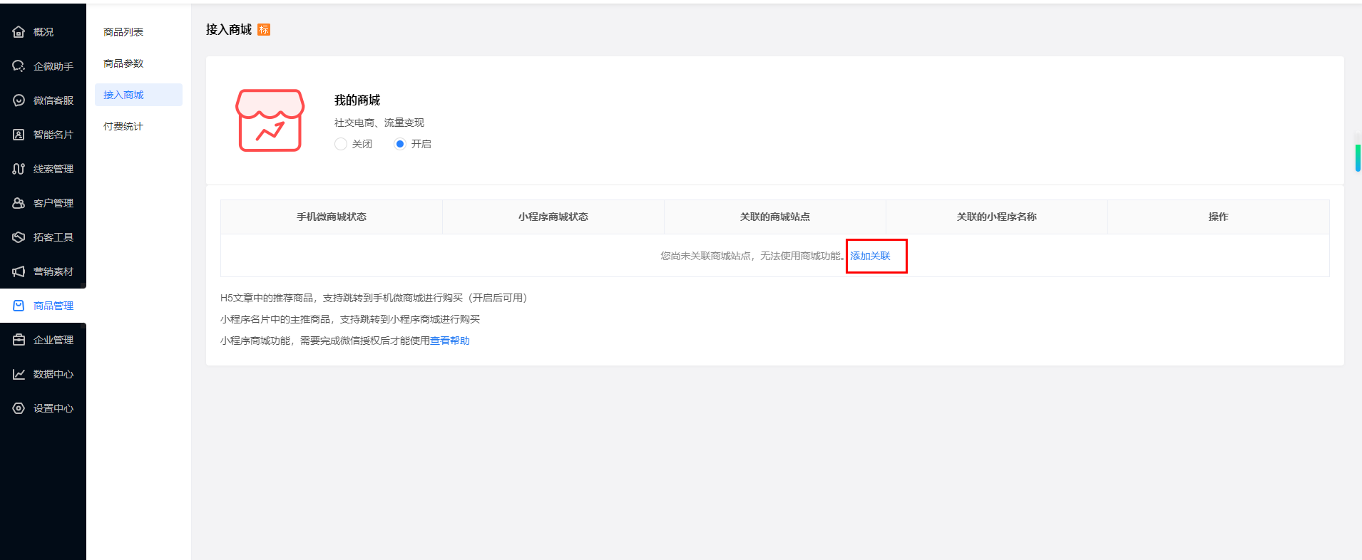 如果只需要商品导入和对接手机商城,开通有商城站点,即可开启实现。