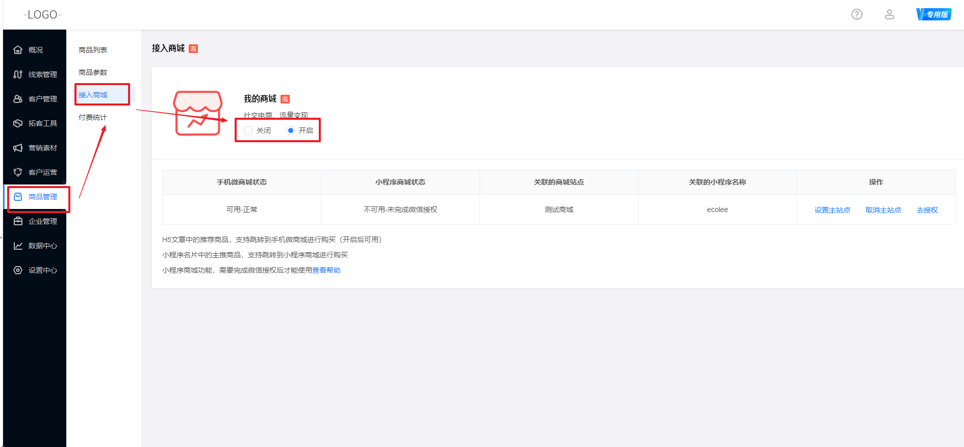 A:目前接入的商城只能是系统里的商城,暂不支持外部商城系统。