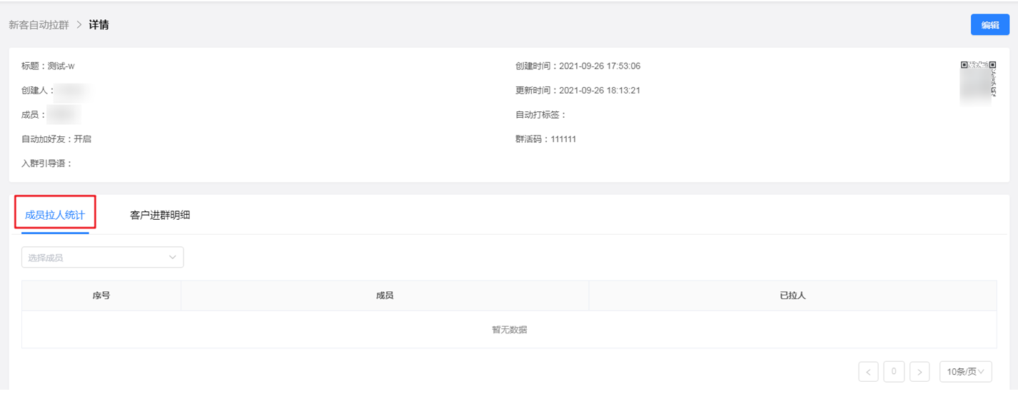 活动创建后,管理员可查看拉人数据统计(注意:需要添加成功,且进群后才能被统计到、群被解散,或者加群后再退群均统计不到)。