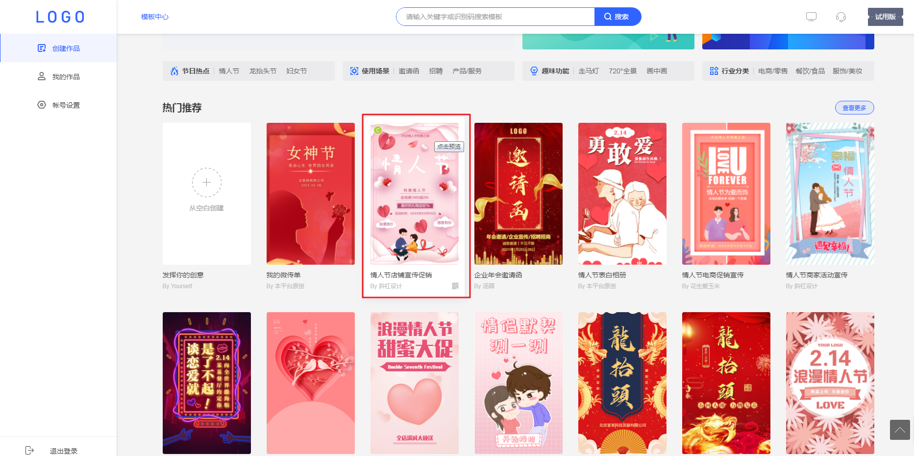 ② 进入微传单页面,点击您所需要的传单模板(如下图模版)。