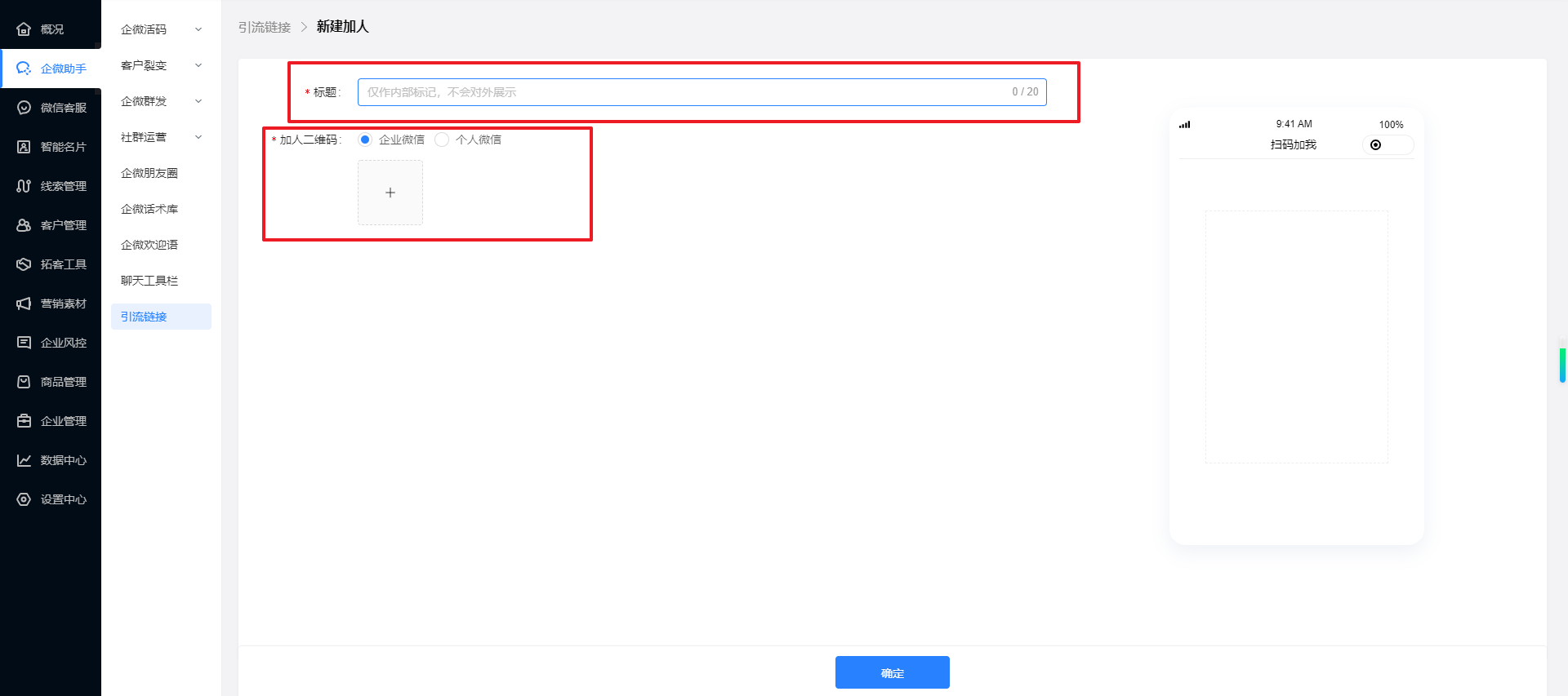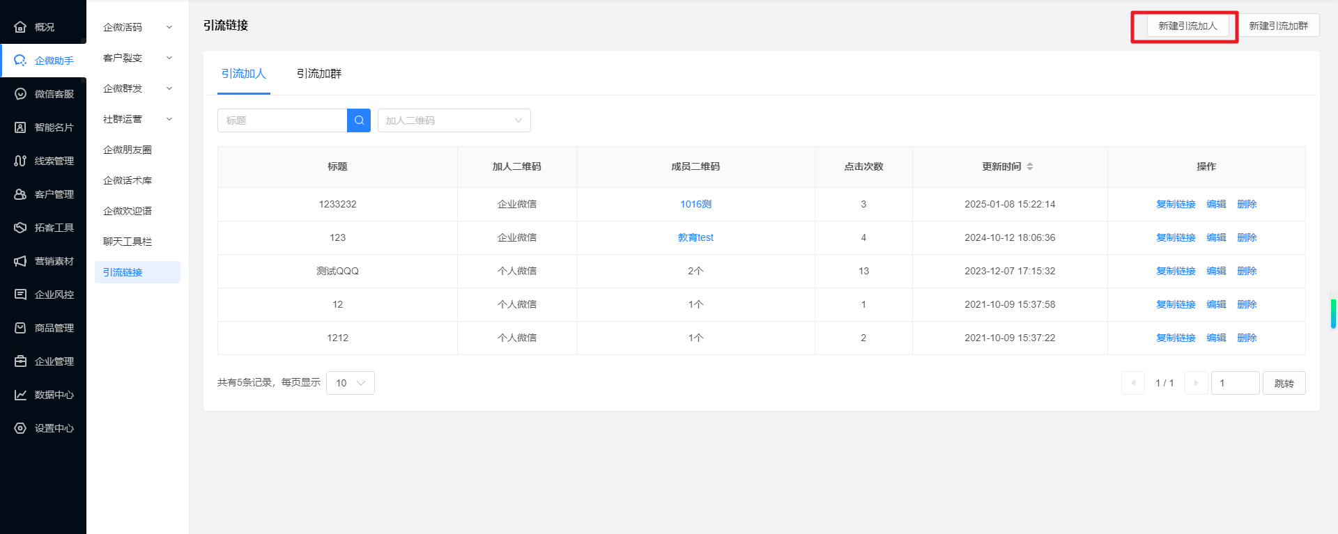 将链接发给客户,支持客户点击扫码一键加人、一键扫码加群,便捷引流。