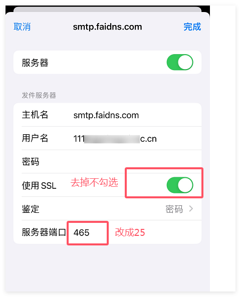 发件服务器 主机名:smtp.faidns.com