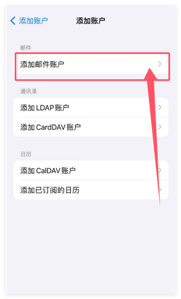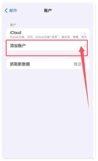 1、点击【设置】—【邮件】—【账户】—【添加账户】