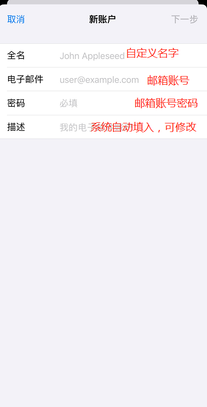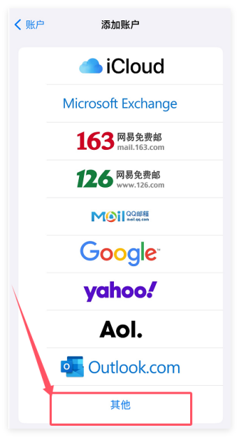 2、完成上述操作,进入下图一,拉倒底部,点击【其他】-【添加邮件账户】,进入信息填写页面。