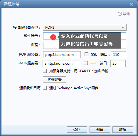 POP服务器:pop3.faidns.com 端口:995