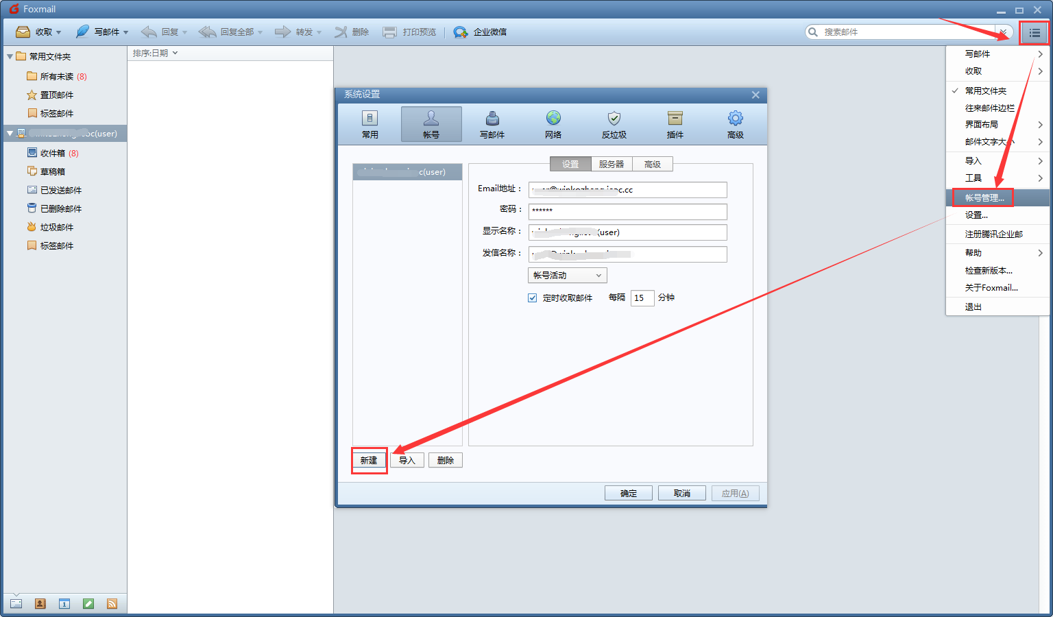 若Foxmail已有账号,也可以另外新建新的账号