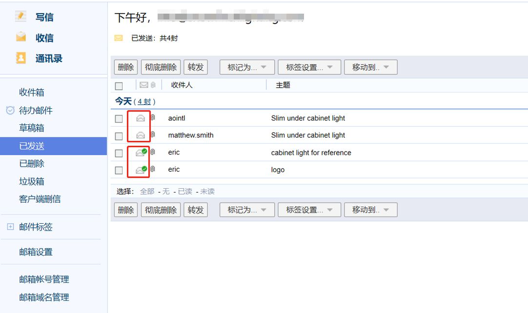 如果是在其他客户端发送邮件的,是不会出现这个绿色的标识的。