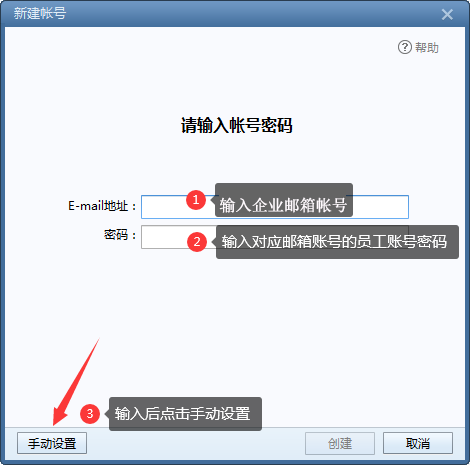 2、输入邮箱账号密码,输入后点击【手动设置】