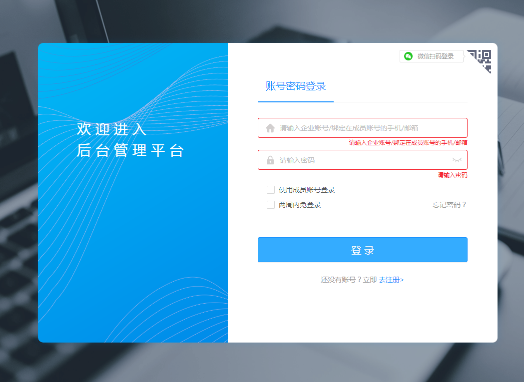 3、分配到邮箱账号的使用者,打开 后台管理平台 使用成员账号登录邮箱。