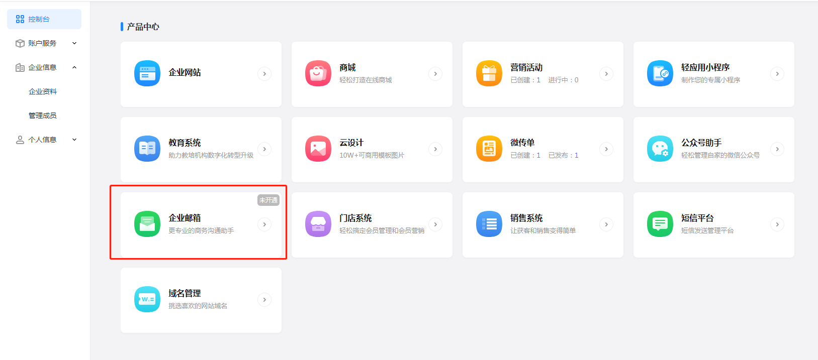 访问/,登陆企业账号,随后点击“企业邮箱”即可打开后台
