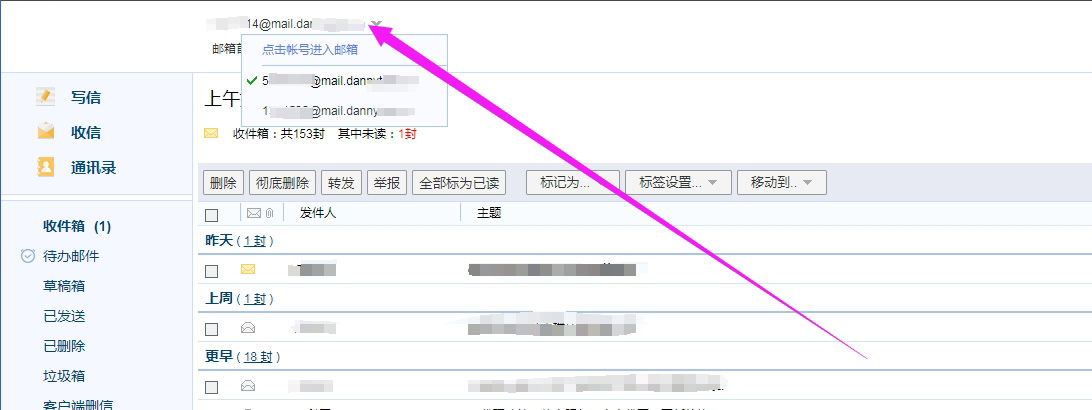 A:登录邮箱后台,右上角切换邮箱账号进行管理。