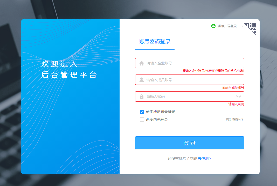 【成员】访问/,勾选“使用成员账号密码”,依次输入企业账号、成员账号、成员账号的密码登陆,随后点击“企业邮箱”即可开始使用邮箱。