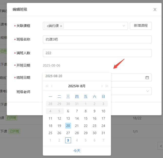【教务】支持往前修改结班日期