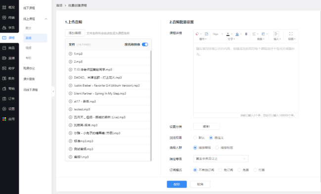 批量创建音频课程和视频课程